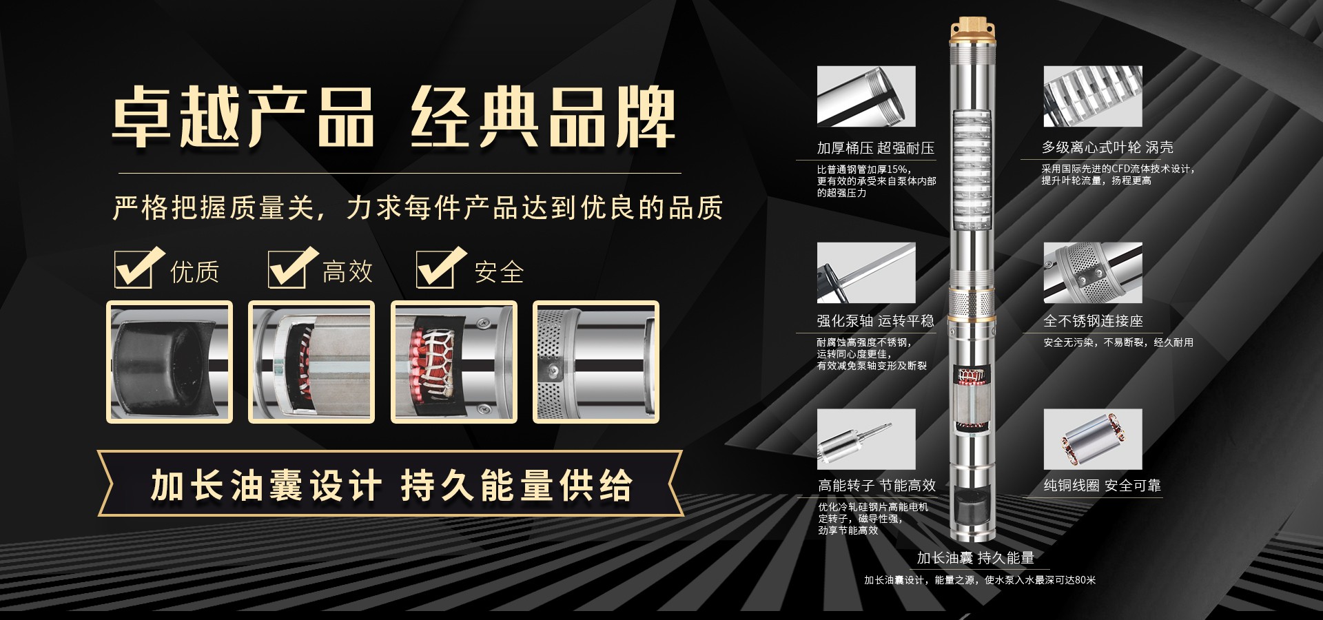 公司始終站在深井泵行業(yè)的前端位置,科研力量、產(chǎn)品和設(shè)備技術(shù)水平均達(dá)到國內(nèi)優(yōu)質(zhì)水平,公司始終堅持走科技興企、自主創(chuàng)新的企業(yè)發(fā)展之路,產(chǎn)品不斷推陳出新,可廣泛應(yīng)用于農(nóng)業(yè)灌溉、生活用水、循環(huán)供暖、污水處理、市政供水、石油化工、冶金礦山等領(lǐng)域。